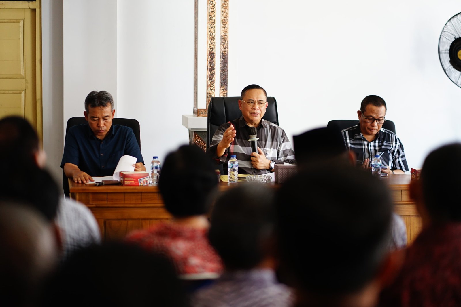 Pati – Bupati Pati, Sudewo, memimpin rapat intensifikasi Pajak Bumi dan Bangunan Perdesaan dan Perkotaan (PBB-P2) Tahun 2025 bersama para camat dan anggota Paguyuban Solidaritas Kepala Desa dan Perangkat Desa (PASOPATI) di Kantor Bupati Pati, Minggu (18/5).