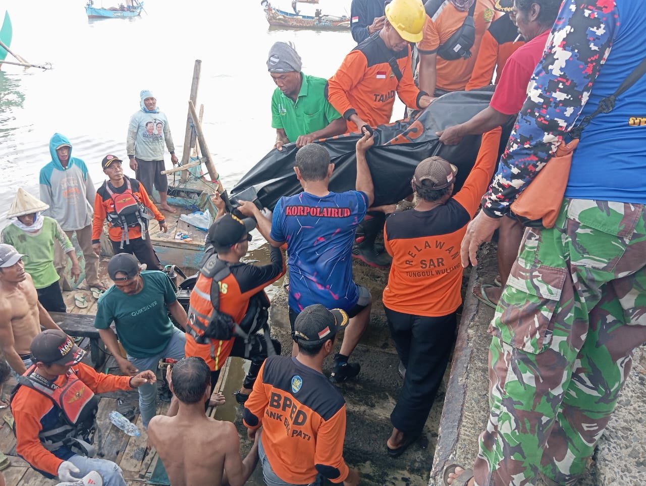 Korban ditemukan dalam kondisi meninggal dunia, terjepit di antara mesin dan badan kapal yang tenggelam. Evakuasi dilakukan oleh tim gabungan yang terdiri dari Satpolairud Polresta Pati, Ditpolairud Polda Jateng, Relawan SAR Arnavat, BPBD Pati, BASARNAS, Relawan SAR Tunggul Wulung, Polsek Dukuhseti, Koramil Dukuhseti, Tim Medis Puskesmas Dukuhseti, serta nelayan dan warga Desa Banyutowo. Jenazah kemudian dibawa ke rumah duka sekitar 1 kilometer dari lokasi kejadian.
