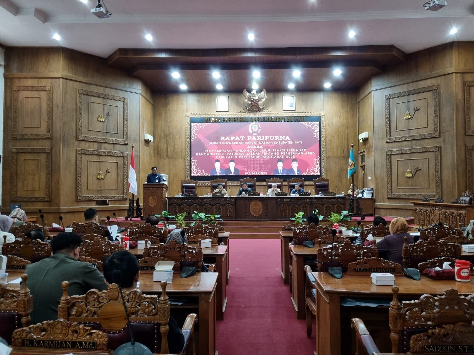 PATI – Suasana ruang rapat paripurna DPRD Kabupaten Pati pada Senin (14/7/2025) tampak dinamis. Para wakil rakyat berkumpul untuk mendengarkan pandangan umum fraksi-fraksi terhadap Nota Keuangan Rancangan Perubahan APBD (RAPBD) Tahun Anggaran 2025.