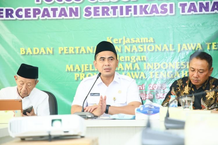 Semarang – Proses sertifikasi tanah wakaf di Jawa Tengah menunjukkan progres yang signifikan. Dari target 72 ribu bidang, sebanyak 69 ribu sudah berhasil mendapatkan sertifikat resmi. Capaian ini diungkap langsung oleh Kepala Kantor Wilayah Badan Pertanahan Nasional (BPN) Provinsi Jawa Tengah, Lampri, dalam Focus Group Discussion (FGD) yang digelar di Kantor Majelis Ulama Indonesia (MUI) Jateng, Rabu (4/6/2025).