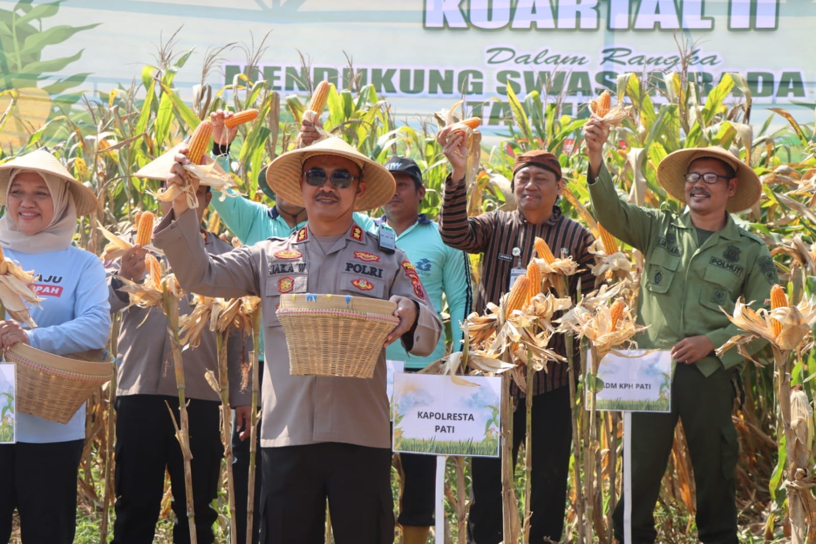 “Hari ini kita bersama Forkopimda Kabupaten Pati ikut melaksanakan secara live panen raya kuartal kedua yang langsung dipimpin oleh Bapak Presiden dengan Bapak Kapolri di Ketapang, Kalimantan,” ujar AKBP Jaka Wahyudi.