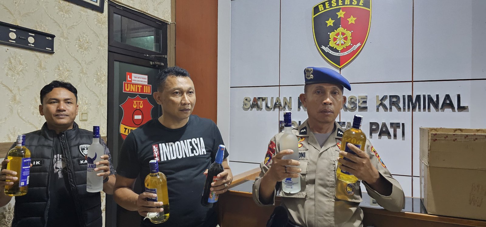 – Penjual minuman keras ilegal dengan barang bukti 8 botol Mansion Jumbo, 8 botol Mansion Super Jumbo, 8 botol Congyang, dan 5 botol Anggur Merah.